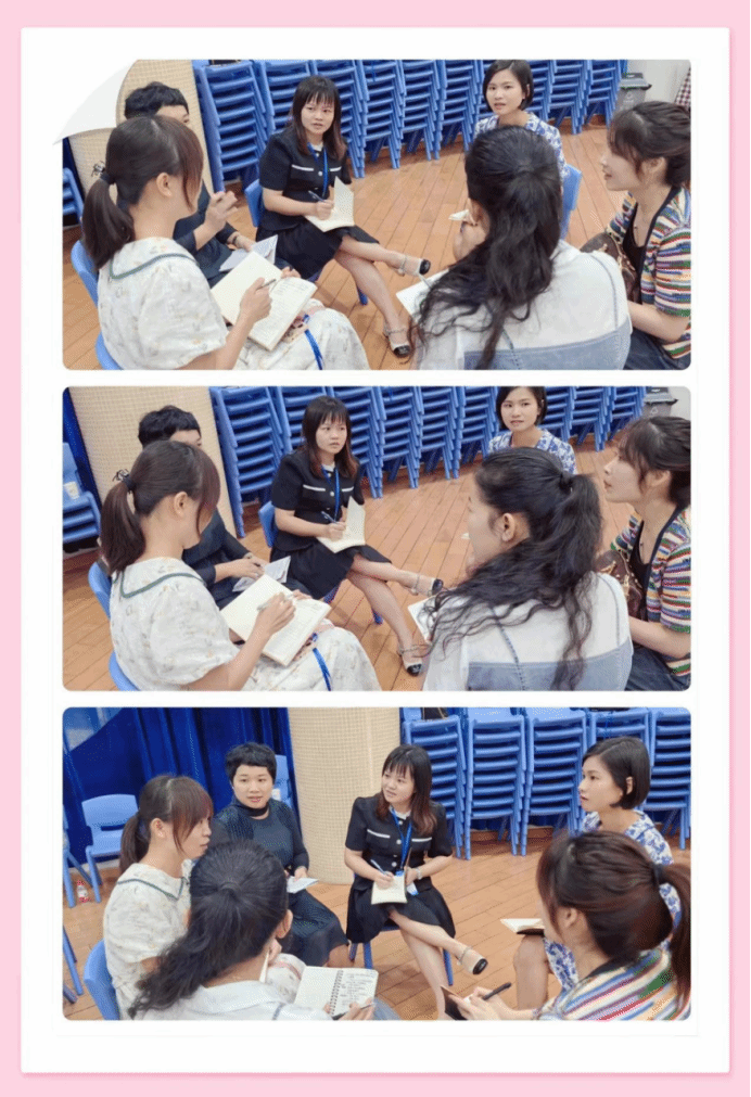 第三组全体学员聆听了何园长对幼儿园“非遗文化+学前教育”的园本课程建设的模式后,组长卓丽茜老师组织组员进行了集中研讨,每一位组员都发表了自己在观摩学习中的想法、感受和收获。