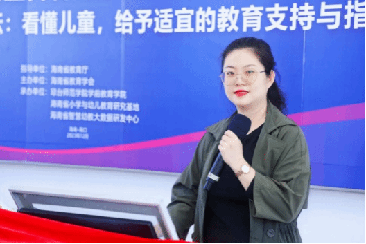 琼台师范学院学前教育学院院长庄小满以学前教育高校教师的视角进行了三个案例的分享,并提出观点:幼儿的观察与理解,让每一位教师都站在同一起跑线上。特别强调要通过观察去理解儿童,进行有效的师幼互动,让幼儿获得适宜的教育支持与指导。