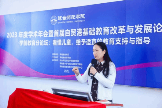 2023年12月9日,由海南省教育厅指导,海南省教育学会主办,琼台师范学院学前教育学院、海南省小学与幼儿教育研究基地、海南省智慧幼教大数据研发中心承办的“2023年度学术年会暨首届自贸港基础教育改革与发展论坛”学前教育分论坛一在琼台师范学院府城校区举行。