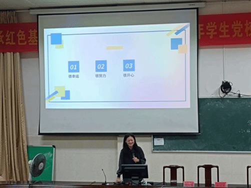 最后上场的是海口市机关幼儿园实习生达珍,分享自己在幼儿园努力工作的成果,并很幸运地遇到一群可爱的小朋友,珍惜与幼儿的相处时光,表达了对幼儿的喜爱和对幼儿园的感谢;正如达珍同学在分享主题中所表达的“很努力,很幸运,很开心”。