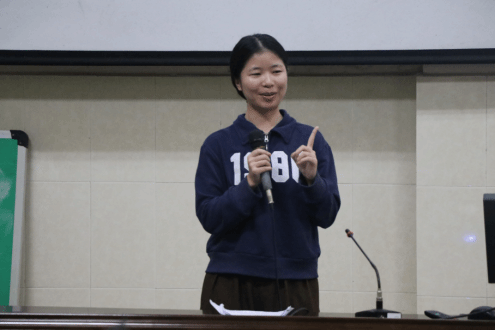 第二位上场的是海口市教育幼儿园实习生黄洋,分享了实习期间观察到的关于小班幼儿建构游戏的发展现状;阐述幼儿产生独自游戏的原因,进而发表个人在实习期间的心得。