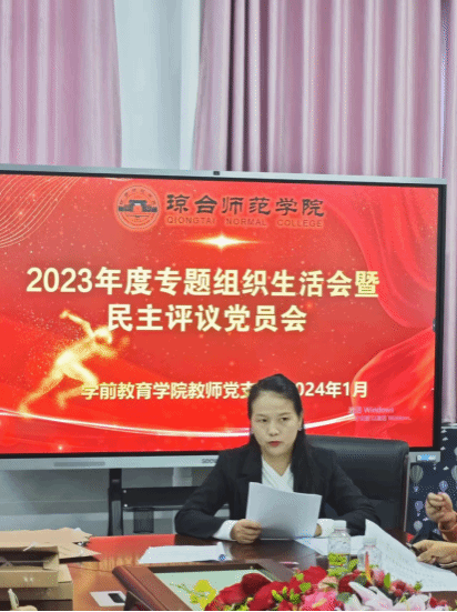 2024年1月21日上午,学前教育学院教师党支部在体艺馆三楼教师办公室召开2023年度民主评议党员大会,教师党支部全体党员参加会议。