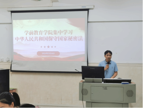 为深入学习贯彻党的二十大精神,强化保密意识,维护国家安全,同时加强我院全体教职工对国家秘密的保护意识,提高保密工作水平。2024年5月14日,学前教育学院在科艺楼201教室集中学习《中华人民共和国保守国家秘密法》,集中学习由学院党委书记杜文忠主持,学院领导班子成员、专任教师、管理人员、辅导员60多人参加学习。