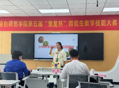 比赛过程中,王羽菲同学教态大方得体,表达流畅且富有趣味,肢体动作自然亲切,教学设计贴合小班幼儿学习特点,“在游戏中教学、在生活中教学”的设计思路获评委高度认可;陈玮娴同学台风稳健,教态亲切自然,现场节奏把控精准,一举一动尽显幼儿教师的专业风采;王协同学选材精巧、教学设计独具匠心,将幼儿教育的专业性与趣味性完美融合;王林同学凭借扎实的教学基本功和清晰的课堂逻辑,展现了优秀的师范生素养;来自秀苑区中心幼儿园的实习生李诗嘉同学作为学院参赛选手中的一员,自弹自唱完成展示,台风沉稳、节奏得当,综合素养同样赢得现场好评。