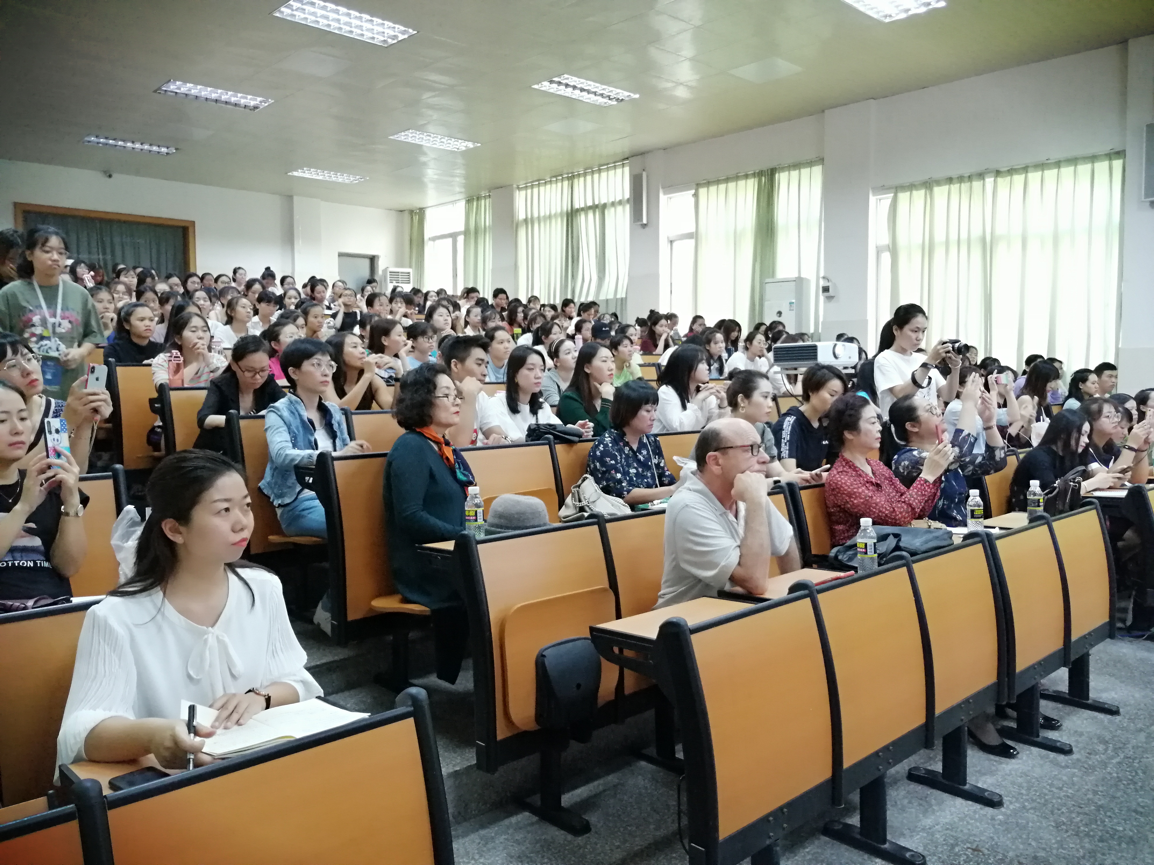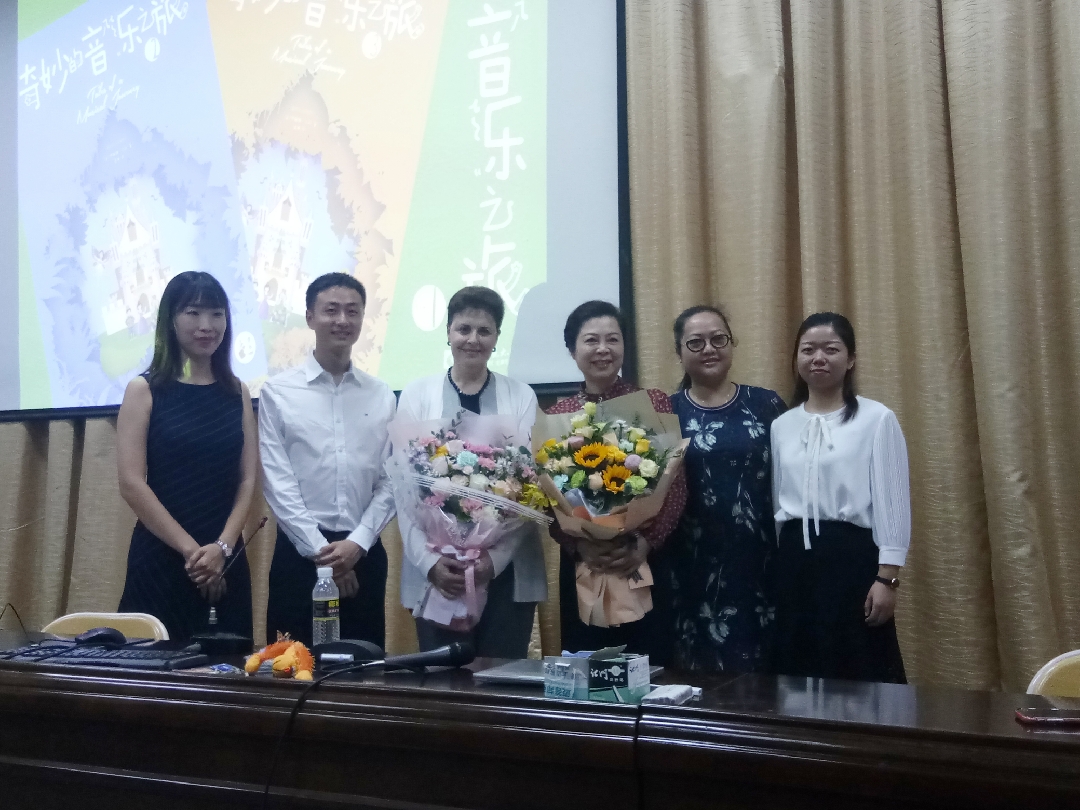 2019年11月5日下午,由琼台师范学院学前教育学院主办的《钢琴启蒙教育成功的秘密》学术讲座在远程多功能教室如期举行。本次活动有幸邀请到美国钢琴教育学家伊利娜·戈琳女士莅临讲学。到场嘉宾有海南省音乐家协会副主席、海南省钢琴学会会长张黎教授,海南省钢琴学会副秘书长吴兆萍女士。学术讲座由琼台师范学院学前教育学院五年制专业团队副主任万媛媛老师主持,出席本次讲座的还有我院的教师代表以及300多名学生代表。