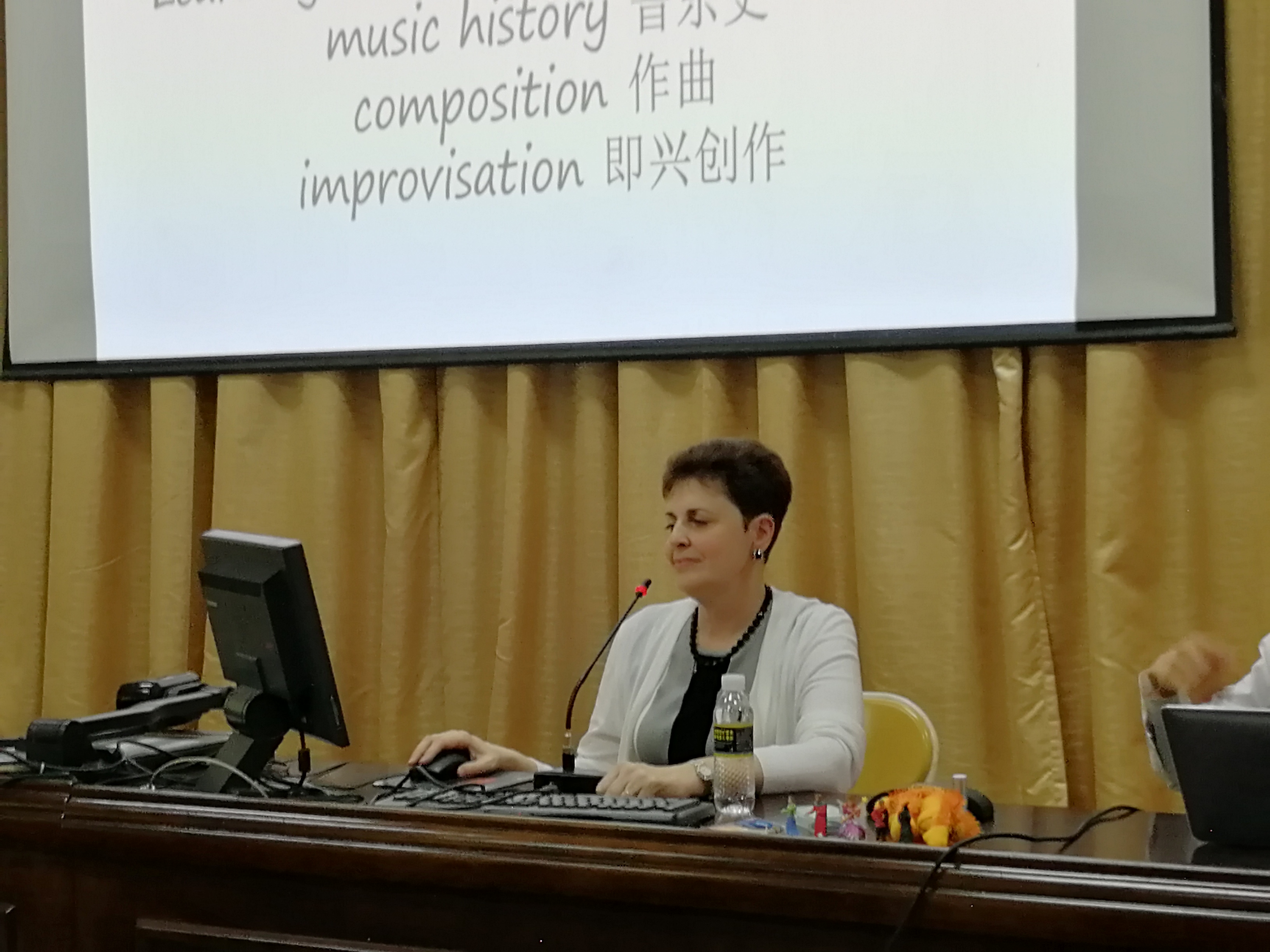 伊利娜·戈林被评为近30年内美国最有影响力的儿童钢琴教育家之一,拥有钢琴演奏、钢琴教育、钢琴伴奏和室内乐四个硕士学λ。她还有着三十多年的教学经历,拥有丰富的教学经验的伊利娜女士在讲座中剖析了俄罗斯、美国与中国钢琴启蒙教育的现状及差异,并为师生解析最前沿的钢琴启蒙教材《奇妙的音乐之旅》,以及教授新颖的教学游戏,伊利娜女士的讲解使得现场师生反响热烈,不断获得在场人的阵阵掌声。