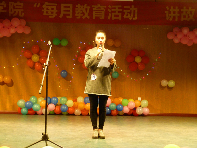 同时还有独具一格的自传故事《做最好的自己》、《世界上最远的距离》、《那些年我们错过的故事》,形形色色的青春小故事,勾起我们心中的最深的敏感处,那些只属于我们青春的小秘密被照耀出来。更有焕然一新的《小王子之小狐狸》、《七个金苹果》、《寂寞的树》、《从你的全世界路过》、《路遥与马力》带给我们独特的感受,不得不说,选手们的说演绘声绘色,充分体现了我校学生的风采魅力。