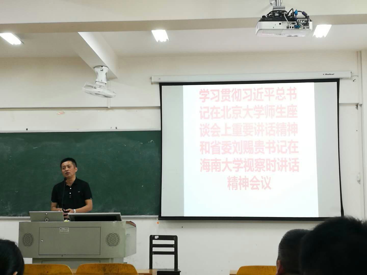 为更好地学习宣传贯彻习近平总书记在北京大学师生座谈会上的重要讲话精神和省委刘赐贵书记在海南大学讲话精神,我院于5月15日下午在电教楼503召开了相关学习专题会,幼儿师范学院党总支郑传鹏书记作了重要讲话,我院党员教师参加了此次学习专题会,专题会由郑传鹏书记主持。