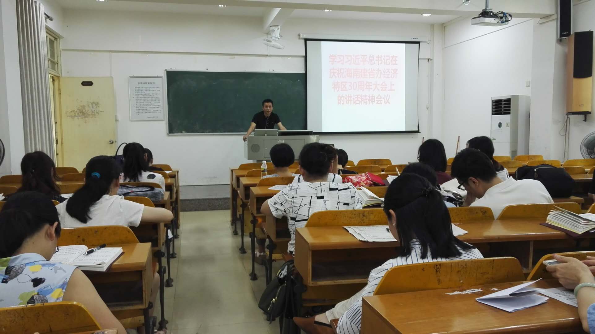 5月16日下午,幼儿师范学院在电教楼503教室召开学习专题会,认真深入学习习近平总书记在庆祝海南建省办经济特区30周年大会上的重要讲话精神。我院党总支郑传鹏书记出席并主持了学习专题会,幼儿师范学院党员教师参加了此次学习会.