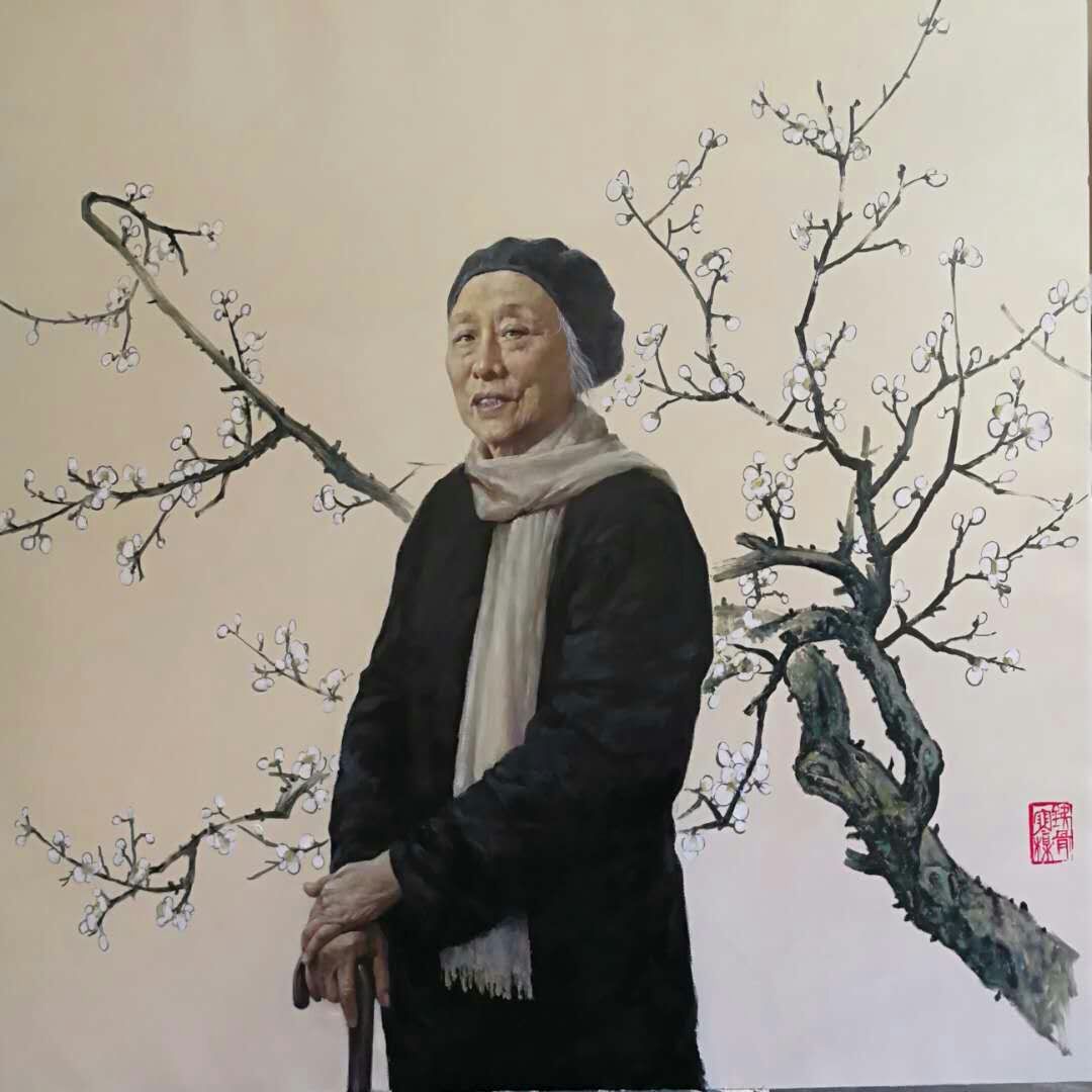 吴官友老师是中国美术家协会会员、民革中央画院理事、也是我省著名的画家。近年来,在教学和工作的同时,他创作了一批优秀的油画作品,如表现红色娘子军的油画《琼崖姐妹》入选“2007年庆祝中国人民解放军建军80周年全国美术作品展”,也是此次展览中海南省唯一入选的作品,现被中国国防大学收藏。这次入选的作品《铁骨寒梅》采用油画写实的手法,将中国画的一些元素结合到作品中,表现了何香凝先生晚年的形象。背景选用了何香凝先生钟爱的梅花水墨画,更好的烘托出何香凝先生一身傲骨,刚直不阿、温文儒雅的品性,使这幅肖像画作品更显丰满。