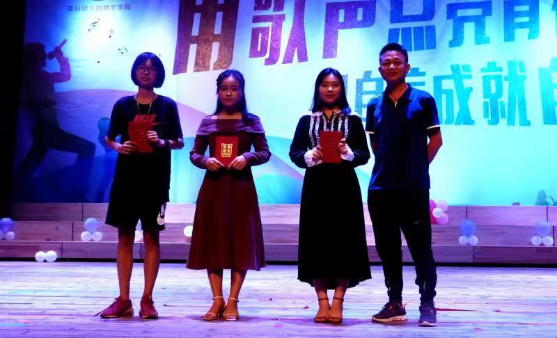 整场大赛始终精彩不断,高潮迭起。唱歌的选手都是学生中的佼佼者,精英中的精英。经过评委评分,由来自2018(五)学前教育(免培)1班的王君与吴贞颖凭借魔性的嗓音及默契的配合,一首《光年之外》一举夺冠。本次大赛获奖选手名单如下:一等奖:王君、吴贞颖《光年之外》;二等奖:袁静雯《从前慢》、王慧娟《我的歌声里》;三等奖:胡玉妃《爱如潮水》、陈贞霏《奇妙能力歌》、薛笑伶《这片海》;优秀奖:倪雨婷、李昕悦、段思伶《City+star+追梦人》,白羽《没离开过》,曾子琳《清平调》,杜芳怡《给未来自己》。