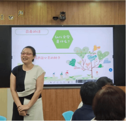 郑晓瀛老师的汇报主题为《开往春天的文学班车》,分享了《幼儿文学》课程建设情况。“幼儿文学是一粒进驻心灵的种子”,郑老师从基本情况、建设思路、建设成果等三个部分展开汇报。展现了《幼儿文学》自开课以来的课程改革与进步和取得的优秀课程成果。