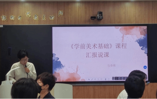 包春雨老师结合学情、目标、教学、教法、学法、效果等六个方面汇报了《学前美术基础》课程的建设情况。《学前美术基础》基于“学生的基础不强,主要来源于高中美术课”的学情,课程融合了线上线下多种资源,以大师作品的鉴赏为主线,综合使用讲授、示范、讨论等多种授课方式,改变学生的思维模式,并通过“练习法”和“以赛促学”,提升学生的美术素养和绘画创造能力。