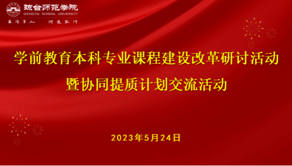 5月24日上午8:30-13:00,琼台师范学院学前教育学院在府城校区图书馆201成功举办学前教育本科专业课程建设改革研讨活动暨协同提质计划交流活动。研讨主题是学前教育本科专业课程目标、内容、教学方法以及考核方式的改革。