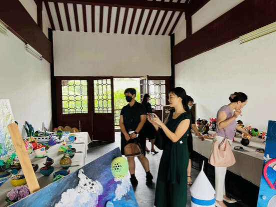 活动开始前,各位专家和园长们在琼台书院二楼展厅参观了学生的非遗主题环创展和美工作品展。