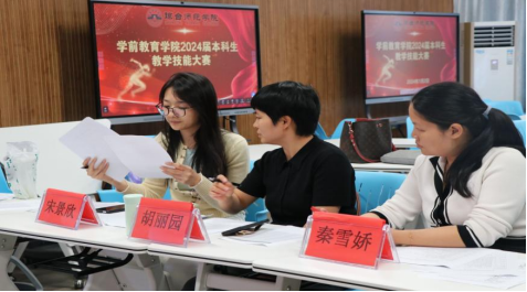 大赛荣幸邀请到学前教育专业副主任胡丽园老师、教研室主任秦雪娇老师和宋景欣老师担任评委工作。三位评委对参赛学生的表现进行了认真细致的评价。评委们表示,经过一个学期的实习后,参赛学生们在教学技能方面有了显著提升,同时也提出了一些宝贵的建议,以帮助他们进一步提高教学水平。