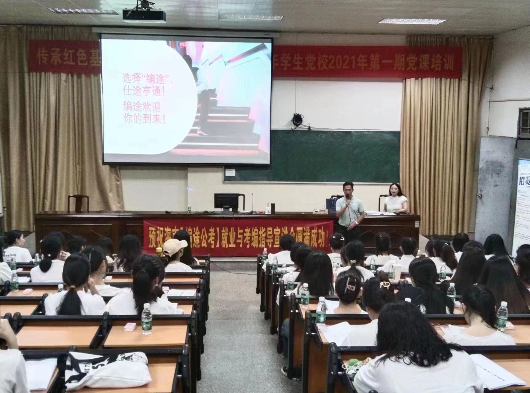为增强我院在校生对就业和考编方面的深度了解,全力保障我院毕业生顺利就业、顺利考编,我院特邀海南编途人力资源有限公司莅临校内给同学们开展就业与考编指导。本次宣讲会于2023年5月3日 19:30在琼台师范学院府城校区科艺楼B栋101(远程一)开展,学前教育学院分管毕业生就业辅导员喻芳,海南编途人力资源有限公司负责人陈定锋团队七人一行,2023届毕业生等70余人参加宣讲会。