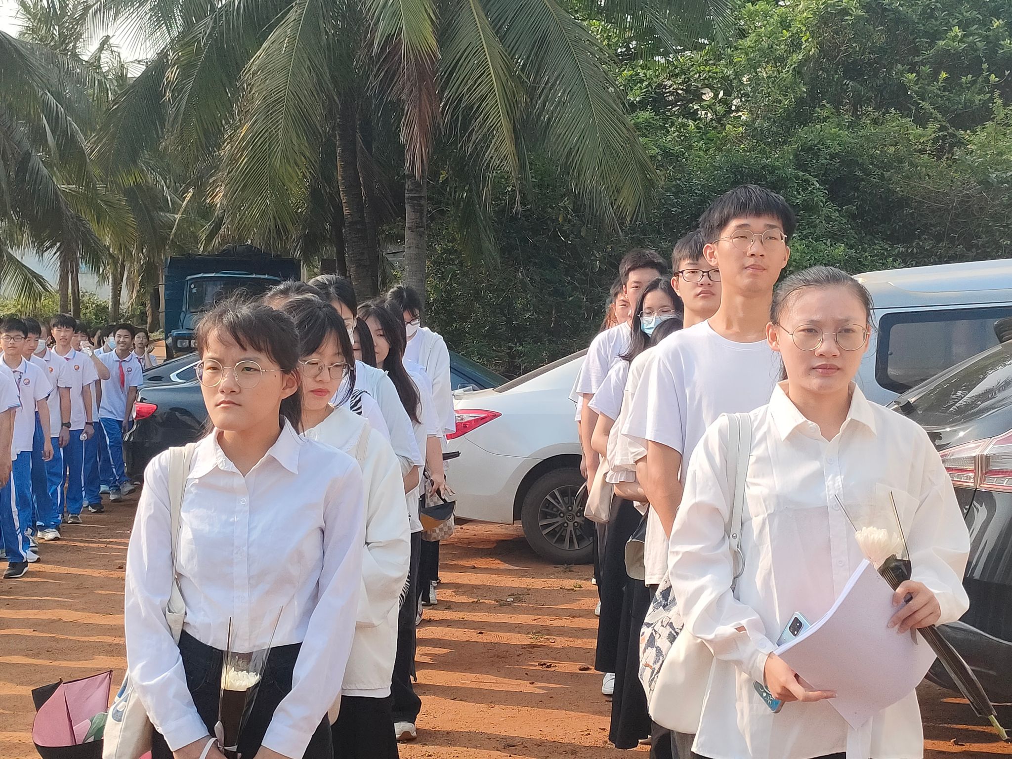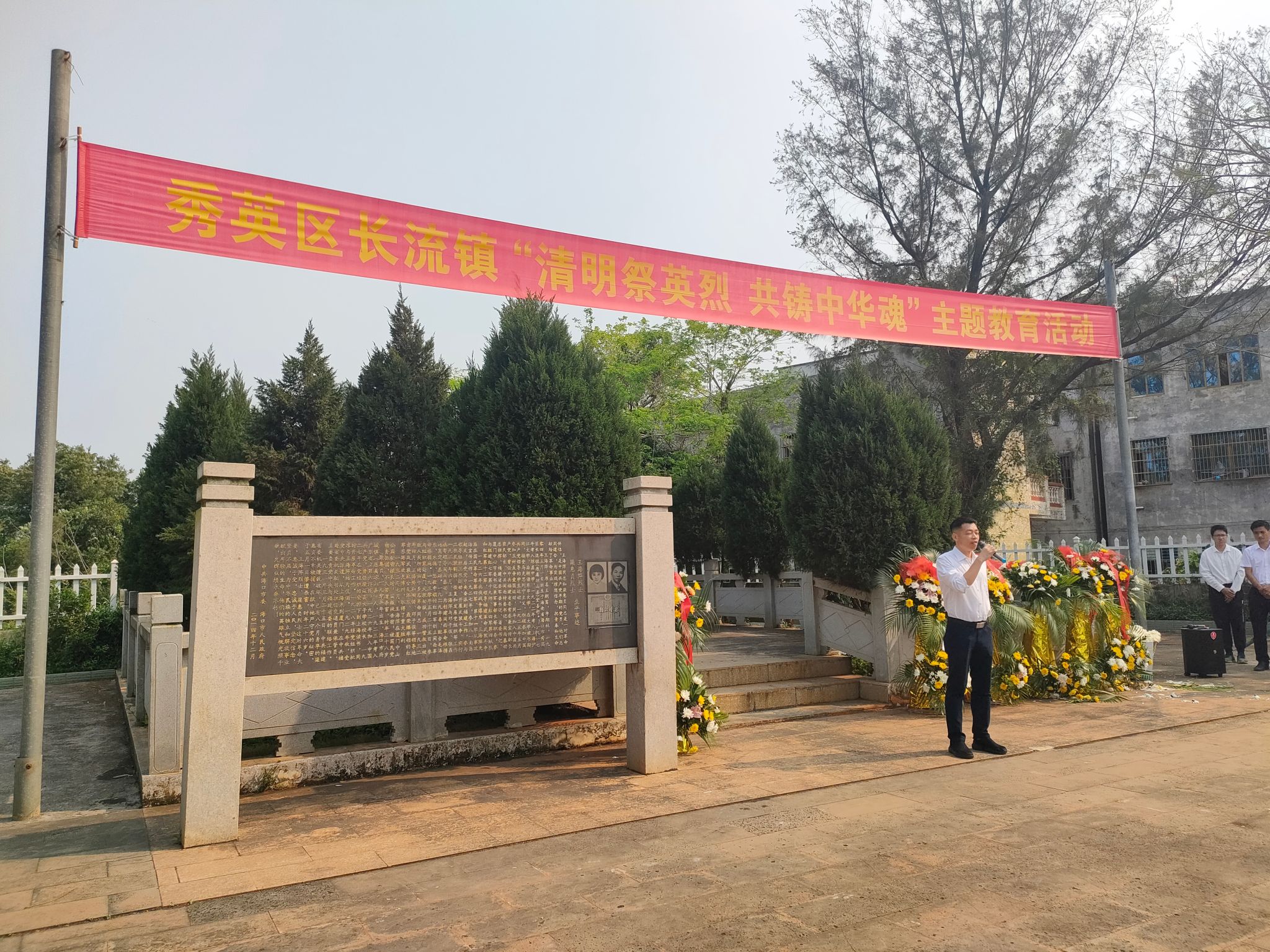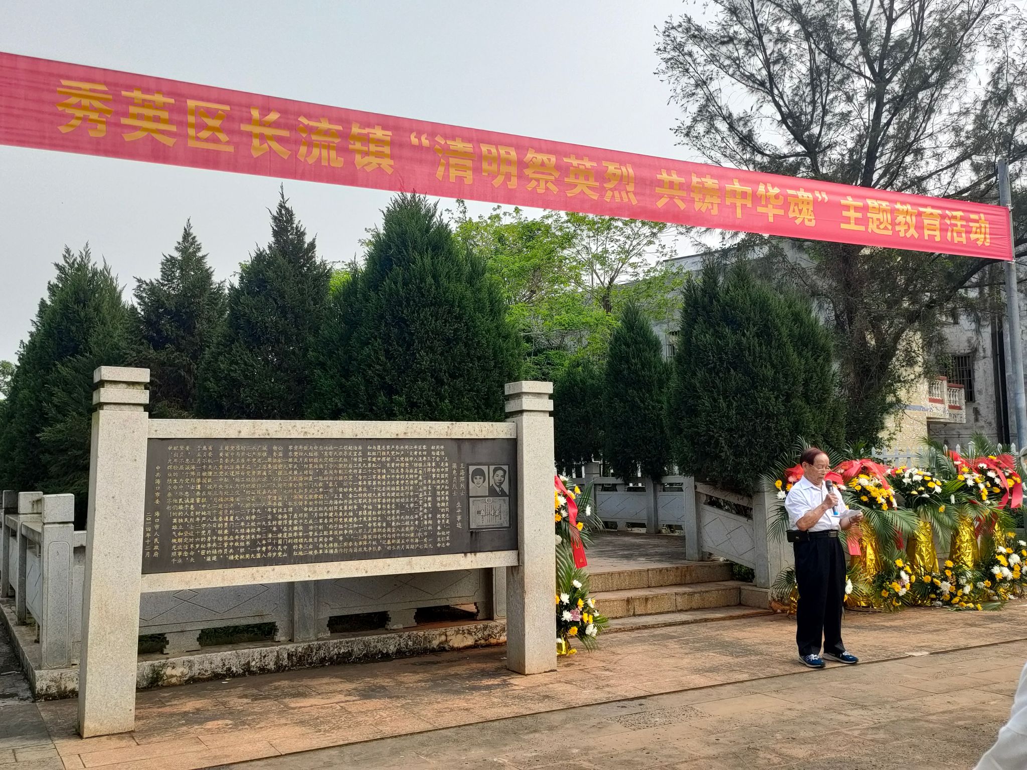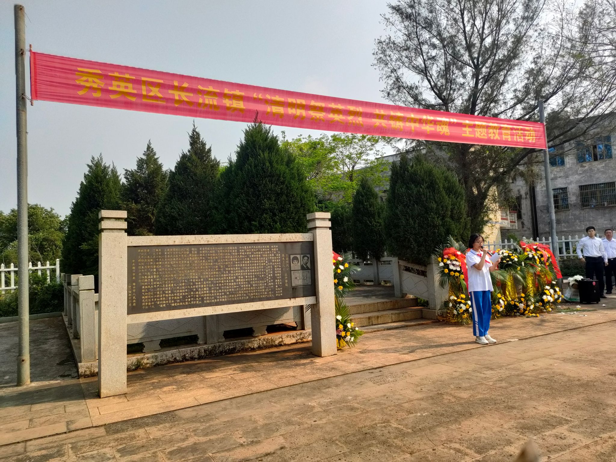 在王海萍、梁惠贞烈士纪念碑前,学前学子们全体肃立,手捧白菊,认真倾听长流镇党委书记林雷、烈士家属代表和中学生代表的发言,缅怀纪念革命先烈王海萍、梁惠贞烈士的英雄事迹。怀着沉痛的心情向革命先烈默哀1分钟并鞠躬。随后一行人近前瞻仰纪念碑,向烈士陵园献花并绕纪念碑一圈。