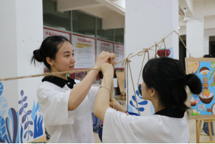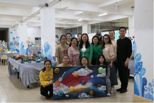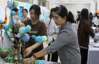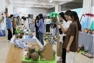 为深入学习贯彻党的二十大精神,加强学风建设,进一步培养我院学生动手能力和创新创造能力,提升未来幼儿教师的专业技能水平,树立学生将材料变废为宝的环保意识,学前教育学院特举办“聚焦党的二十大,奋进新征程——琼台福椰创意园”活动,由美术课程组欧阳娉婷老师以及团委学生会组织策划,于2023年4月8日至9日在府城校区食堂二楼进行布展。