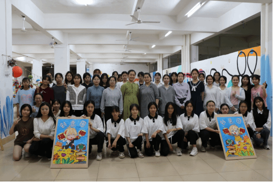 展览雏形初现后,学前教育学院党总支书记谢彦波、院长庄小满、副院长罗丽丹、乔金霞带领我院辅导员老师们来到琼台福椰创意园艺术展厅现场参观并点评指导,确保正式展览顺利举行。